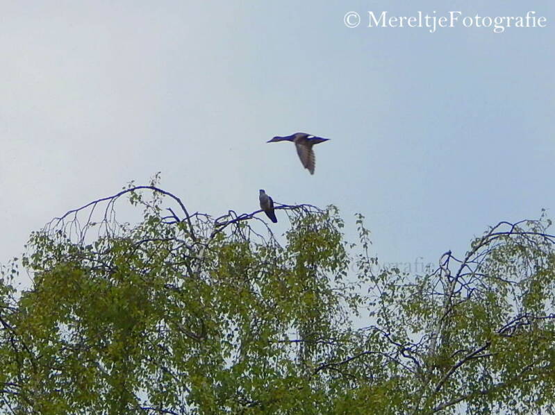 Zijn geroep word inmiddels beantwoord, koekoek nummer 2 meld zich en direct zie je zijn houding veranderen. En weg is hij....