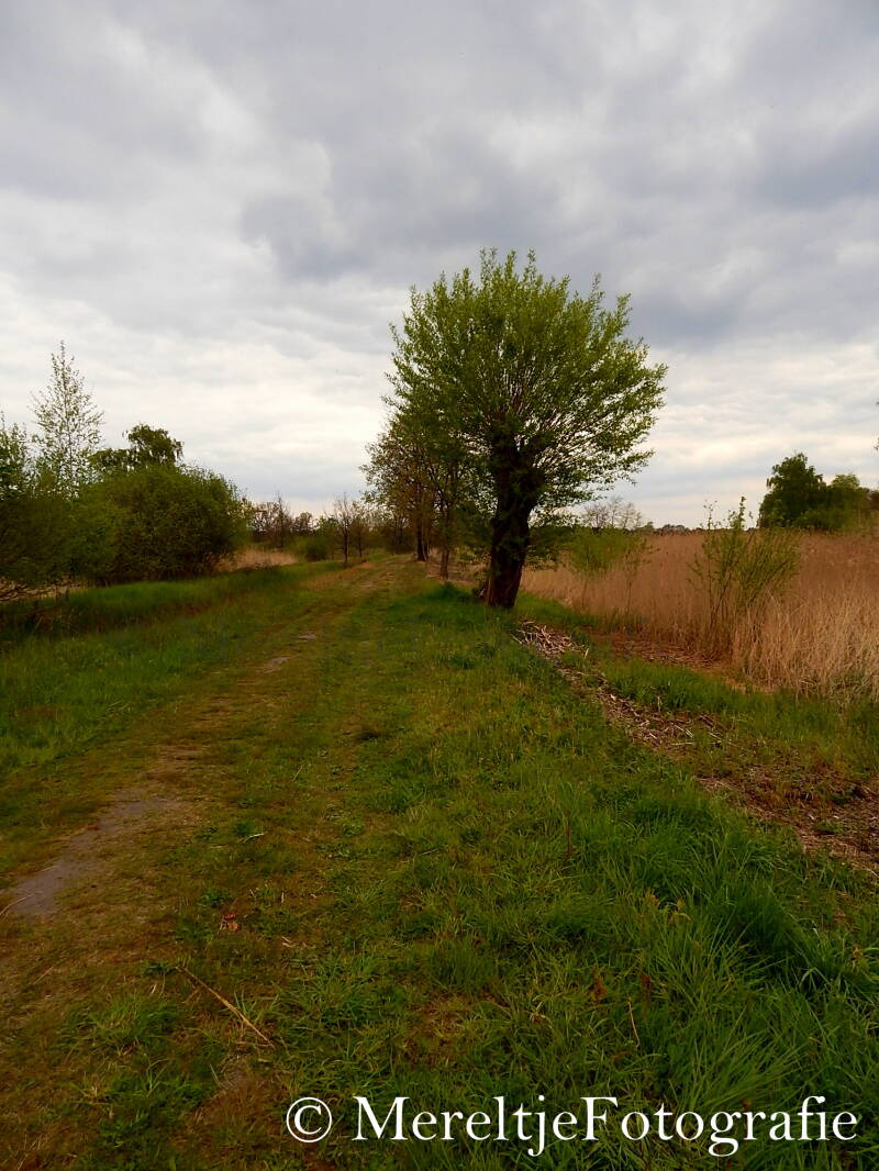 We houden rechts aan, waar het fietspad de bocht naar links maakt, hier is het nog rustiger lopen.
