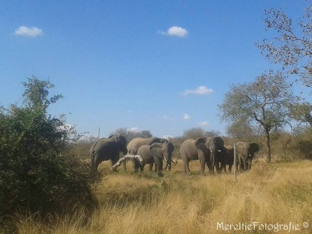 We zien al snel zebra’s, in Zuid Afrika bontkwagga genoemd, ze eten lange grassen. Ook zien we impala’s en giraffen, dan vinden we een spoor van een neushoorn, we volgen het. Steve verteld heel veel over de natuur, hij weet heel veel over de planten, bomen dieren en sporen.
